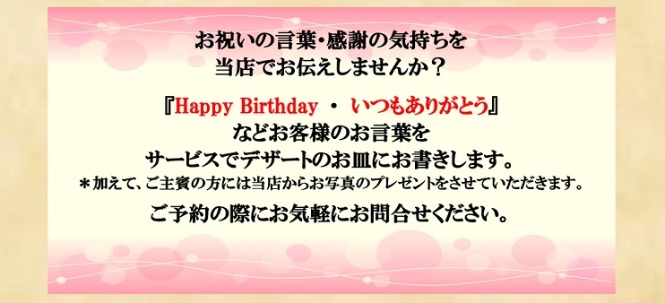 芹澤料理長からのお知らせ